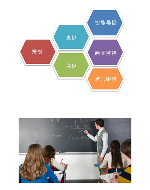 教育錄播系統(tǒng)集高清視頻跟蹤、編碼、導播、交互及錄播平臺于一體的集成錄播系統(tǒng),基于嵌入式硬件架構設計,可以同時進行特技切換,完成智能導播,同時渲染出多畫面分割、畫中畫效果,生成電影模式全高清視頻流。